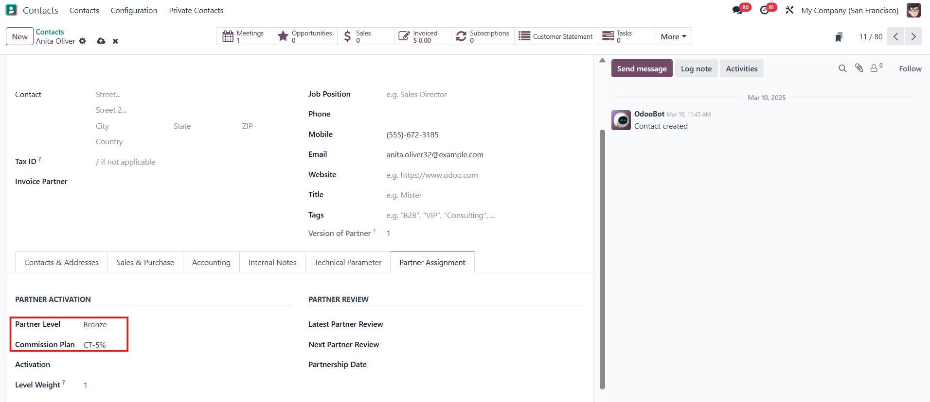 3. Go to Contacts > Create a new contact or edit the existing one > Set Partner Level and then Commission Plan will be auto-filled. | ![]() |