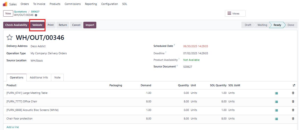 6. Click the Delivery smart button > Validate the transfer | ![]() |