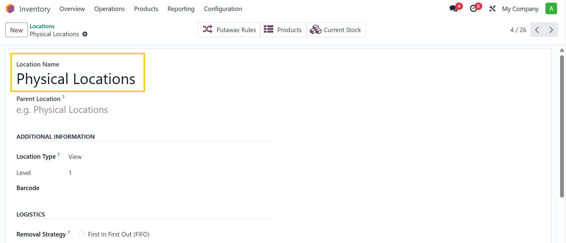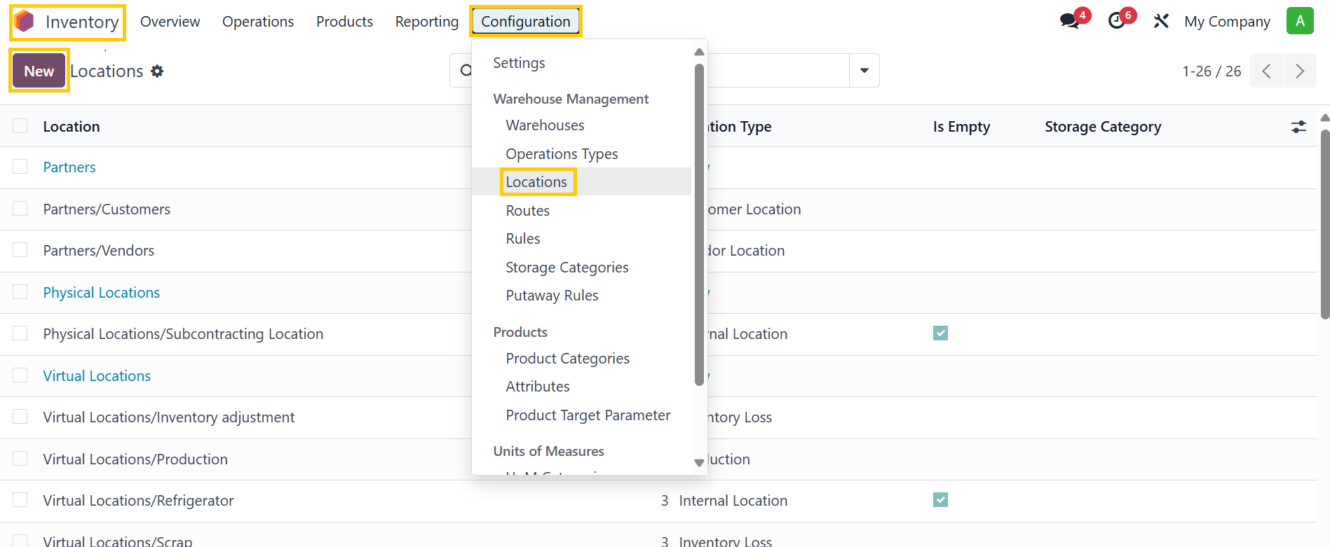 1. Go to Inventory > Configuration > Locations > New | ![]() |