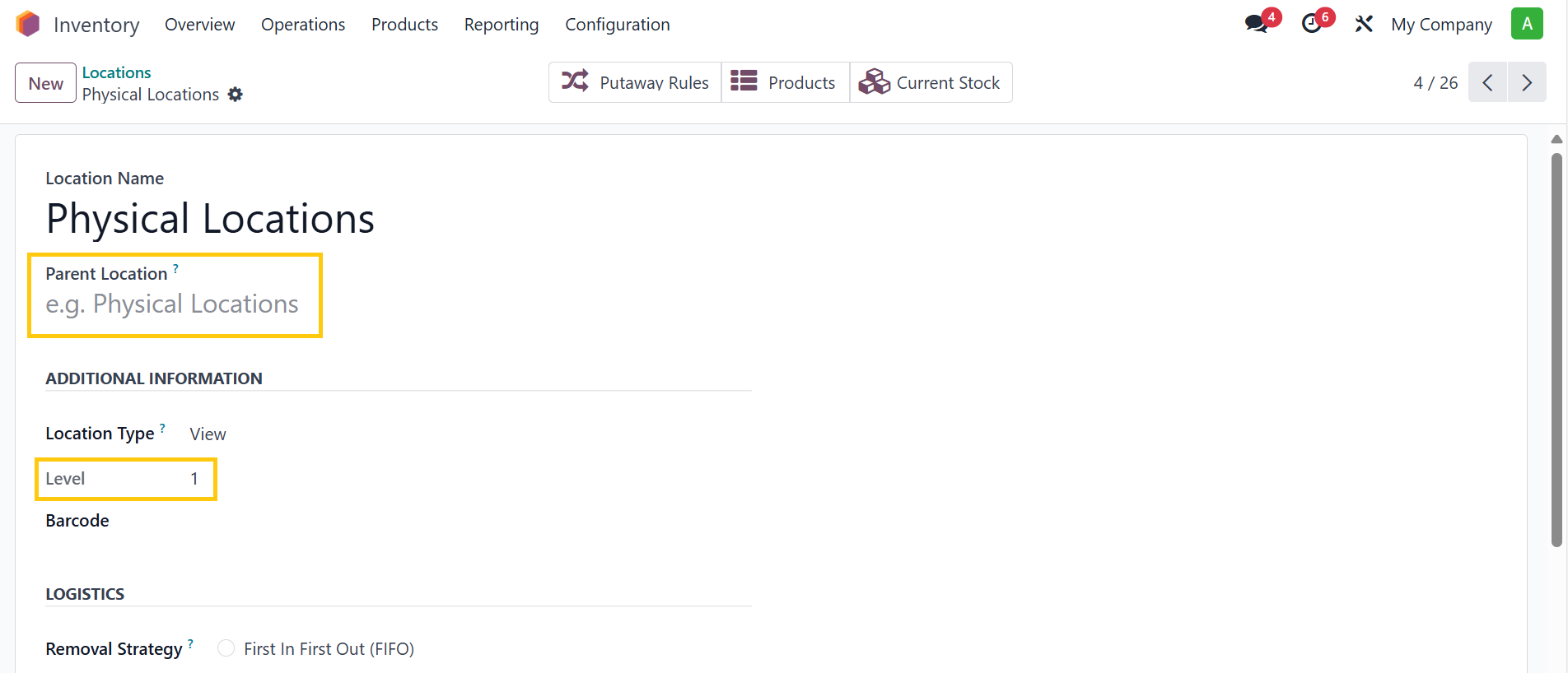 3. Under the Parent Location tab, if you leave it blank > the location will be Level 1 by default | ![]() |